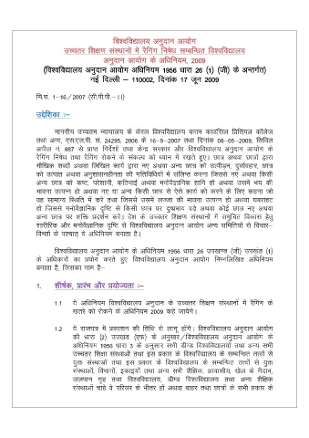 1-1 ;s vf/kfu;e fo'ofo|ky; vuqnku ds mPprj f'k{k.k laLFkkuksa esa jSfxax ds